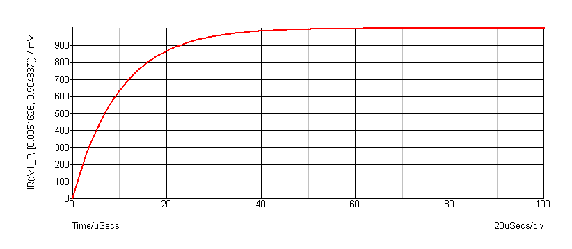 sample interval was ???MATH???1\mu???MATH???Sec so giving a ???MATH???10\mu???MATH???Sec time constant. As can be seen a first