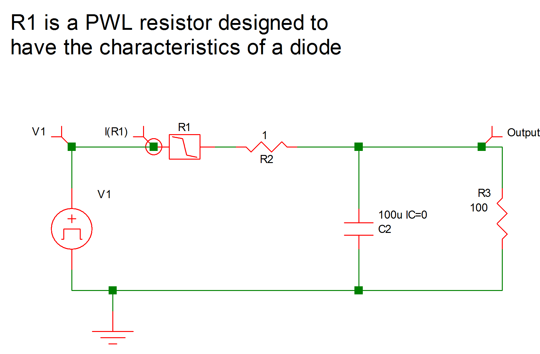 * Single RC Source Rectified into a RC Low-Pass Filter .PRINT ALL .OPTIONS PSP_NPT=211 .TRAN 84m 0 V1 1 0 SIN VOFFSET=0 APEAK=38.5 FREQ=60 TDELAY=0 + OFF_UNTIL_DELAY=NO DAMP_COEF=0 C2 3 0 100u IC=0 !R$R1 1 2 R1$TP_SSPWLR IC=1 .MODEL R1$TP_SSPWLR VPWLR NSEG=2 X0=0 Y0=0 X1=1 Y1=0.5U + X2=1.1 Y2=1 R2 3 2 1 R3 0 3 100 .END