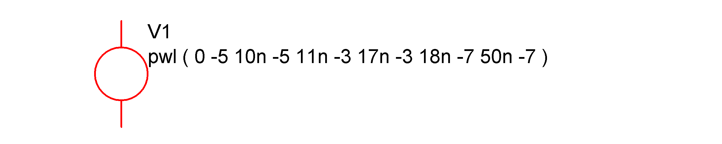 Although the example given below is for a voltage source, the PWL stimulus may be used for current sources as well.