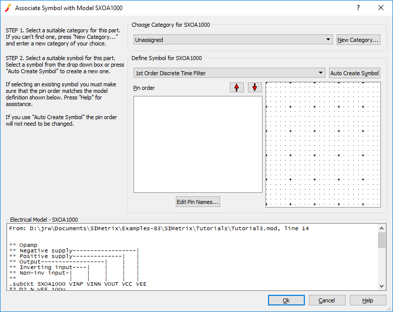 If SIMetrix cannot determine what the device is then, in order to use the device on a schematic, you will need to provide the association information. You will be prompted for this information when you place a part on the schematic for the first time and this is often the most convenient method. However, there is also a method of providing the association information in bulk which is advantageous in many cases.
