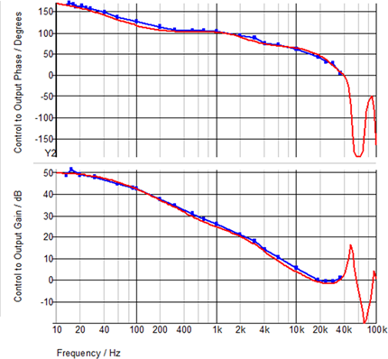 The following graph compares the SIMPLIS AC analysis in red with bench measurements in blue on a hardware prototype. These simulation results were taken from the Self-Oscillating Converter circuit example from the 1.0.1 SIMPLIS is a time-domain simulator, all the time, for every analysis, period topic.