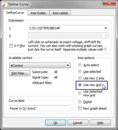 - In the Curve label field, type an appropriate curve label, such as Power in Q1