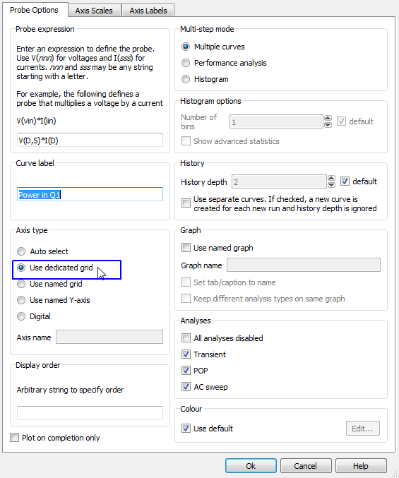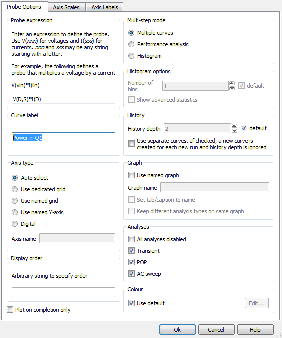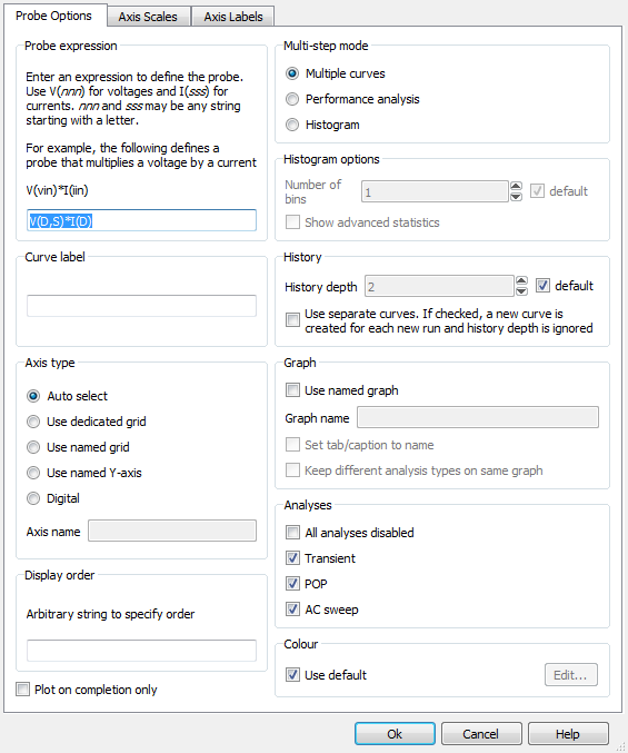 - In the Probe expression box, enter the expression: V(D,S)*I(D).