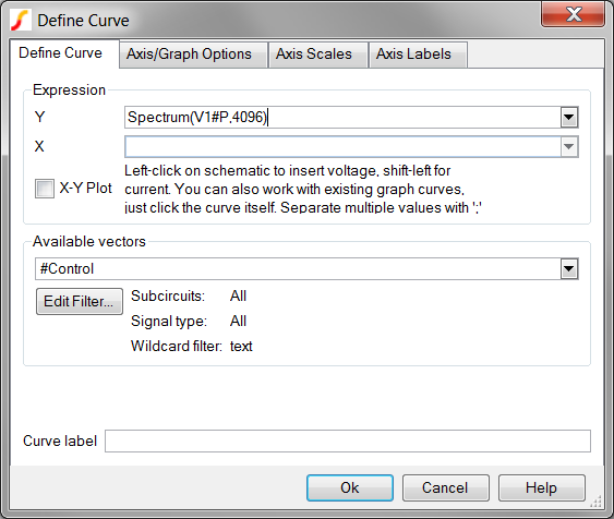 2. In the Y Expression box type Spectrum(V1#P,4096).