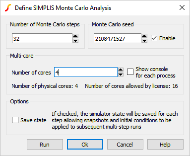 As with the SIMPLIS_Multi Step Analysis the SIMetrix/SIMPLIS Pro and Elite licenses can use multiple processor cores to simulate the Monte Carlo steps in parallel.