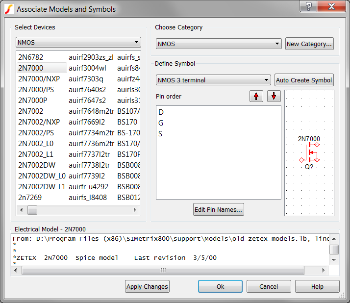 example, the 2N7000 is a built-in model, which has a built-in symbol and an association