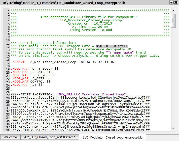 The ability to render a model as ASCII text and then encrypt that text-based model for distribution to a wider audience opens the door to allowing public use of models without disclosing your IP. This key technology is widely used with many IC vendors distributing encrypted models for use with SIMPLIS. In this topic you will learn how to turn models into ASCII text, and how to encrypt these models. The automated processes built into SIMetrix/SIMPLIS make this process very easy.