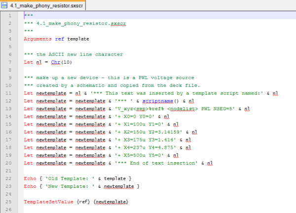 the templatescript 4.1_make_phony_resistor.sxscr is called, the script then