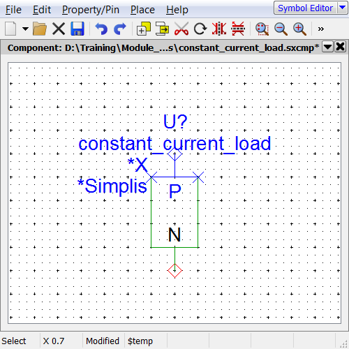 - Open the constant_resistance_load.sxcmp schematic component created during