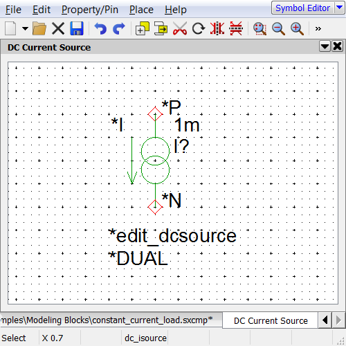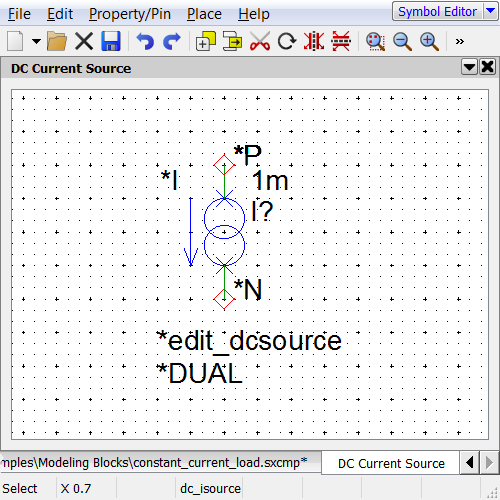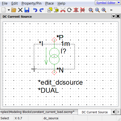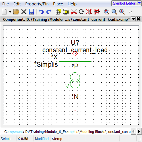 - Select the constant_current_load.sxcmp component file from the Modeling Blocks directory.