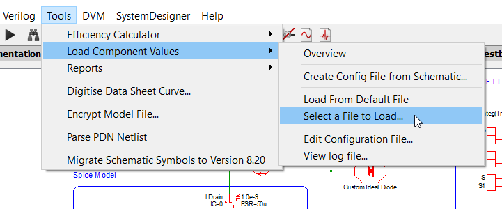 1. From the menu bar, Select Tools > Load Component Values > Select a File to Load .
