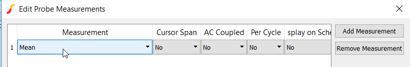 The testbench circuit has four arbitrary probes that measure the following quantities: