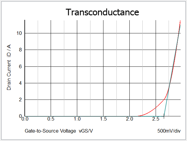 All levels employ an ON and OFF resistance. Level 2 models the forward transconductance gain of the active region as the MOSFET transitions from ON to OFF and from OFF to ON. The transconductance gain is modeled with two PWL segments in the drain current versus gate-to-source voltage plane as shown below.