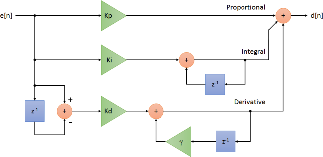 step is to break apart the discrete PID Filter into disrete time building blocks. For this