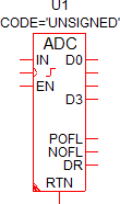 The Analog-to-Digital Converter (ADC) models a generic flash-type ADC.