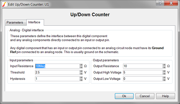 | Ground Ref | Determines whether or not a device has a ground reference pin. Any digital component that has an input or output pin connected to an analog circuit node must have its Ground Ref pin connected to an analog node. This is usually the ground on the schematic. | ||||||