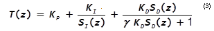 where KP, KI, and KD are coefficients entered in the dialog. To match the frequency response of the discrete PID filter represented by Eq. (3) to the frequency response of the analog PID filter represented by Eq. (2), a first-order approximation is to set KP KI and KD as follows:
