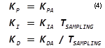 where the A in the three coefficients KPA, KIA, and KDA signifies that these coefficients are associated with Eq. (1), which is defined for the analog PID filter. For more information, see Detailed Device Operation.