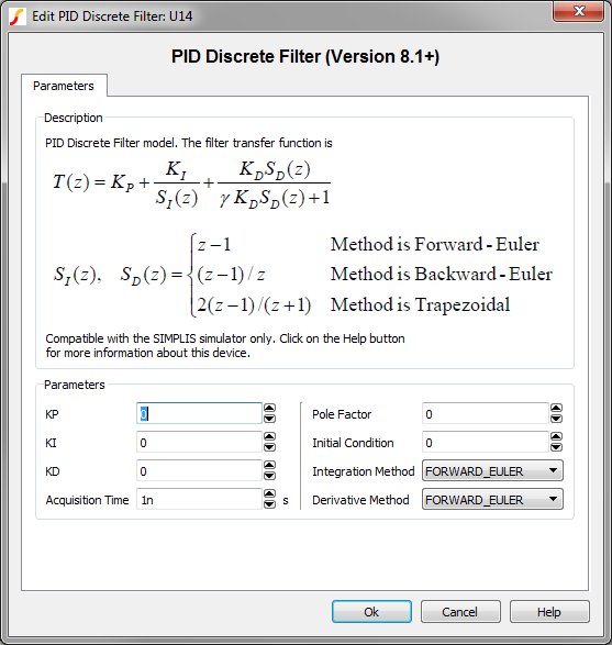 The test circuit used to generate the waveform examples in the next section can be downloaded here: simplis_035_piddiscretefilter_example.sxsch.