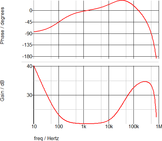 The following AC waveforms plot the gain and phase of the PID discrete time filter. The gain at low frequency is dominated by the integral portion of the filter, followed by a proportional gain of approximately 20dB.