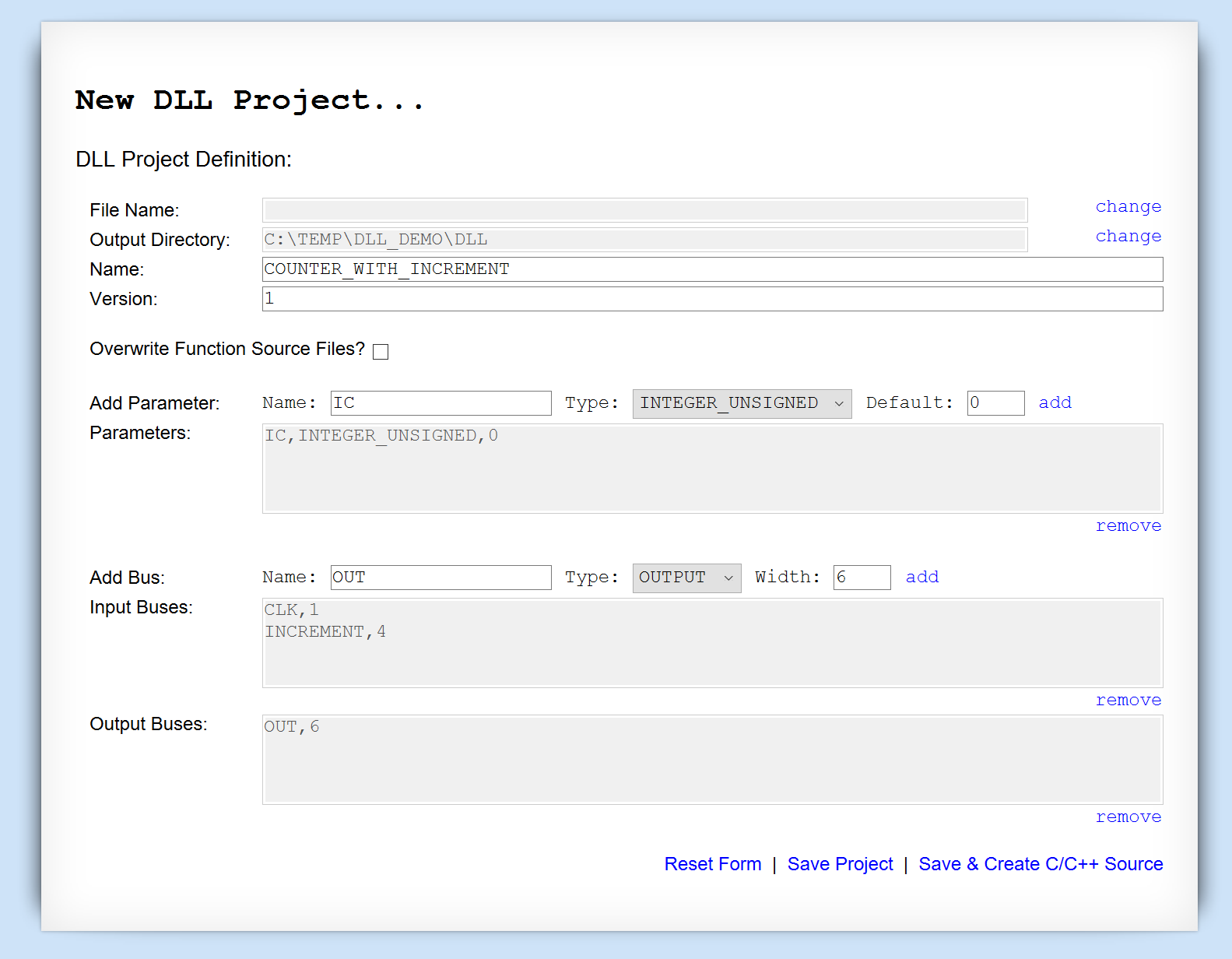 The code generation process creates a ready-to-build Visual Studio project file for your DLL-defined digital device. You can download Visual Studio from Microsoft for evaluation purposes if your organization does not already have a license.