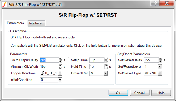 - From the Edit S/R Flip-Flop with Set/Reset dialog box, click on the Interface tab.