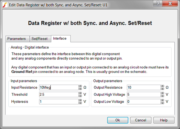 | Ground Ref | Determines whether or not a device has a ground reference pin. Any digital component that has an input or output pin connected to an analog circuit node must have its Ground Ref pin connected to an analog node. This is usually the ground on the schematic. |