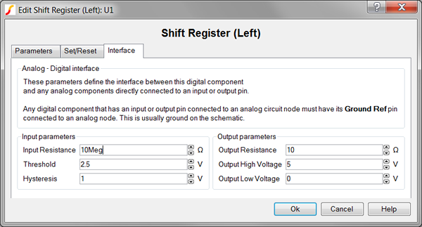 | Ground Ref | Determines whether or not a device has a ground reference pin. Any digital component that has an input or output pin connected to an analog circuit node must have its Ground Ref pin connected to an analog node. This is usually the ground on the schematic. |