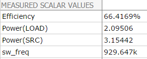 A number of scalar measurements which DVM automatically makes require knowledge of the actual switching frequency of the converter. In particular, the test objectives listed below measure the output voltage and current at the end of the simulation time. These in-regulation measurements require DVM to know the actual converter switching frequency and without this information, the in-regulation measurements are not made. For this reason, a special curve name, DVM Frequency, has been reserved for DVM to find the switching frequency.