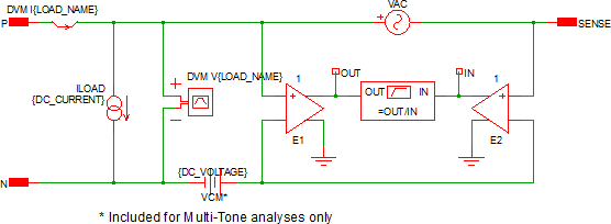 | MULTI_TONE | 0 | Real | 0 or 1 | Enables Multi-Tone AC analysis for this load. For small signal POP and AC analyses, this is set to 0. |