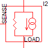 The Square Waveform Load subcircuit models a repeating square wave load current with zero rise and fall times. In DVM, this load is not used in any test objectives, but you can set a load to use this subcircuit with a Squ() call in the Load column of your testplan.
