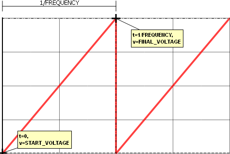 | START_VOLTAGE | n/a | The valley or starting voltage for the sawtooth source voltage. This can be a numeric value or a symbolic value, such as a percentage of nominal input voltage. |