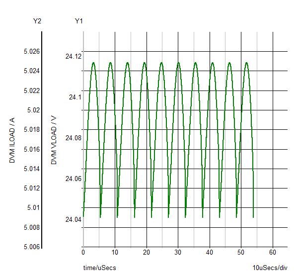 | Max_VLOAD | PASS: Max. Output1 Voltage (24.1166) is less than or equal to Max. Output1 Voltage Spec (25.2) |