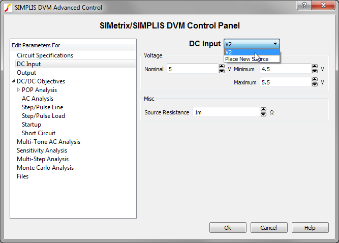 - Double click on the DVM control symbol on the schematic to open the DVM Control