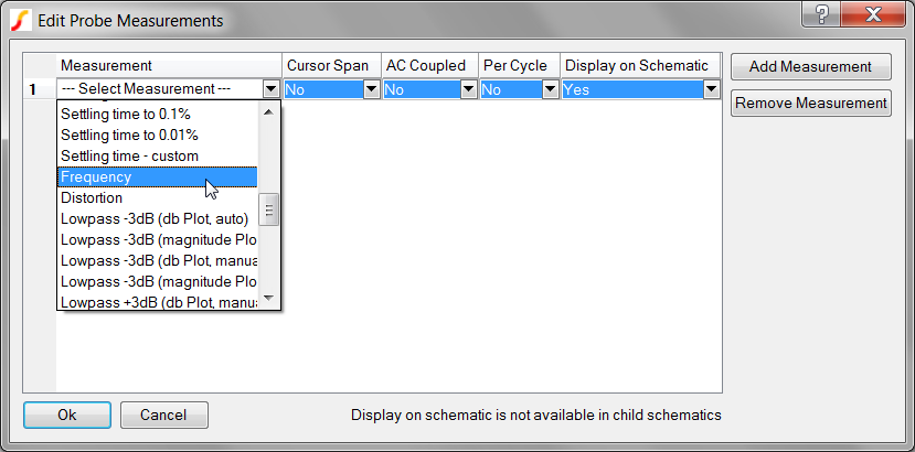 - In the first column, select Frequency, and in the Display on Schematic column,