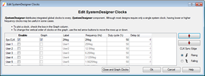 For more information about setting up clocks, see SystemDesigner Clocks.