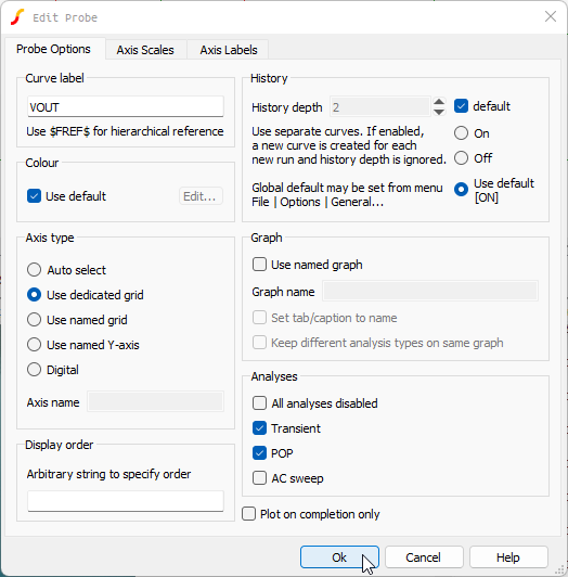 This section of the tutorial explains the process of automatically outputting curves to separate grids. While there are several ways to interactively move curves to new grids on the waveform viewer (e.g. ), these methods need to be run after every simulation. Instead of describing the interactive methods, this topic focuses on automatically making these measurements by adding the measurement definitions to the fixed probes.