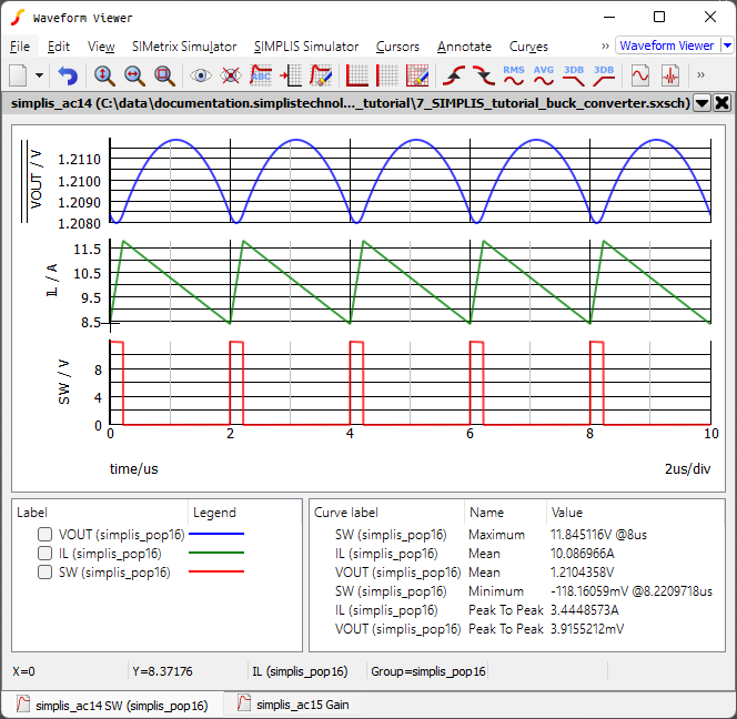 last schematic. A copy of the schematic can be downloaded here: 8_SIMPLIS_tutorial_buck_converter.sxsch.