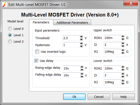 The SIMPLIS MOSFET driver has multiple levels for use in different simulation objectives: