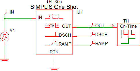 The test circuit used to generate the waveform examples in the next section can be downloaded here: simplis_069_simplis_one_shot.sxsch.