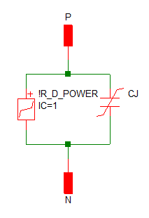| Reverse voltage | 100 | V | The peak off-state voltage seen by this device. Used to extract capacitance for model level = 1 which includes parasitic capacitance. Breakdown is not modeled. |