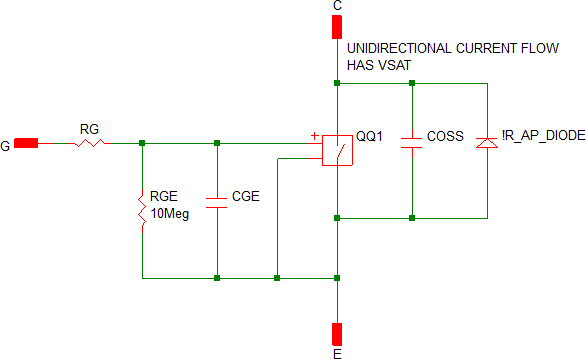 | Gate Resistance | 0 | Ω | The internal resistance of the IGBT. Set to 0 to remove the gate resistance from the model. |
