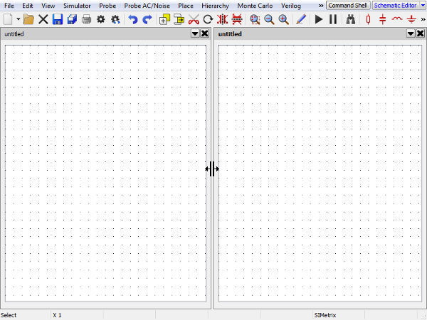 By default the View's will split to take up half of the available space when placed next to each other. They can be resized by moving the cursor in-between them until the cursor shown is visible, then dragging them to the required size, as shown in the figure below of two schematics placed side-by-side.