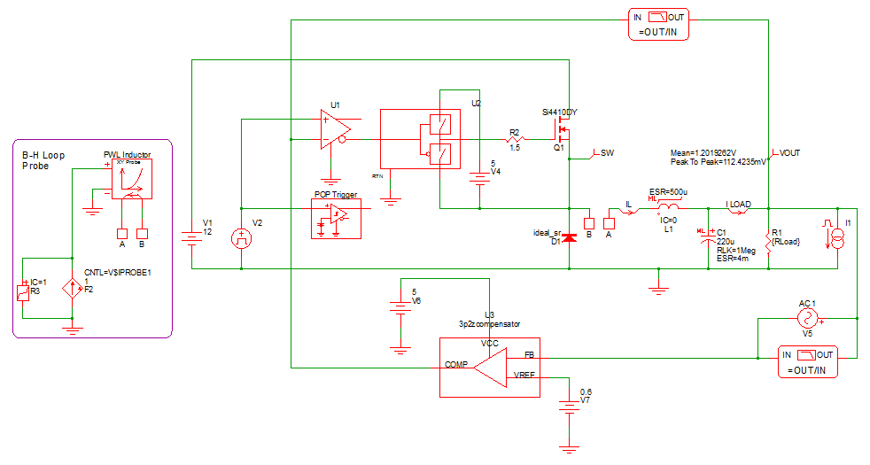 - This SIMPLIS schematic is set up to find the steady-state Periodic Operating Point (POP) of the circuit, do an AC analysis and then do a step-load transient. Each of these three analyses takes about 1 or 2 seconds. The graph viewer opens with the following results.
