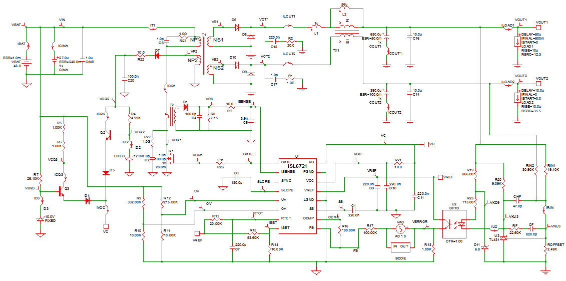 The Dual Output Single Switch Forward Converter Schematic is an excellent example of how SIMPLIS can find the steady-state operating point of a complex power supply system very quickly and accurately.